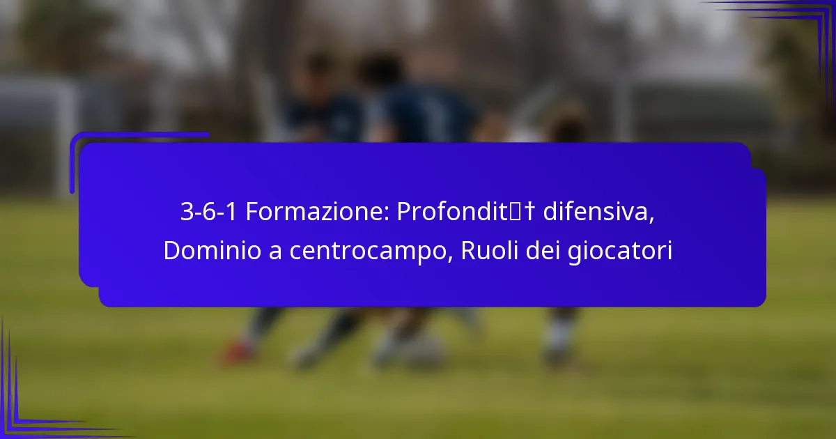 La formazione 3-6-1 è un assetto tattico nel calcio che enfatizza una forte presenza a centrocampo e stabilità difensiva. Con tre difensori, sei centrocampisti e un attaccante, questa formazione consente alle squadre di mantenere una profondità difensiva mentre dominano il centrocampo, facilitando un efficace controllo della palla e rapide transizioni in attacco.